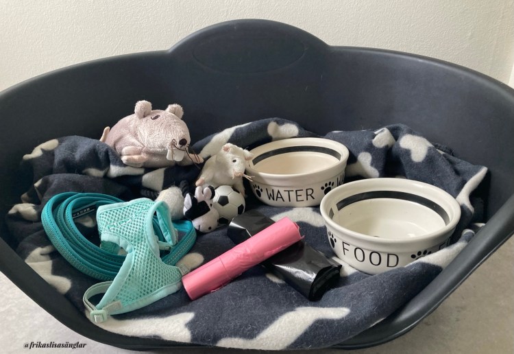 Innan du hämtar hem din nya familjemedlem så finns det en del saker som kan vara bra att ha förberett och köpt hem. En hundkorg, koppel, halsband, matskålar och några leksaker är bra att ha hemma. Självklart så ser du till att ha köpt hem bajspåsar till promenaderna. Glöm inte att ordna med en transportbur till bilen. Det är lag på att hunden ska antingen vara i transportbur eller sitta bältad i ett bilbälte avsedd för hund.